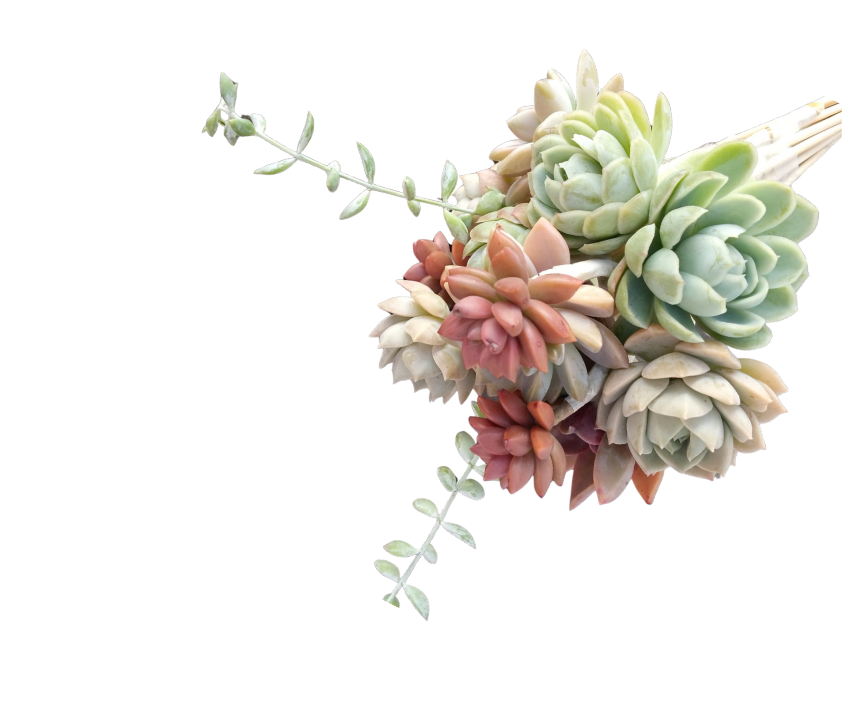 - Armonía de Tonos: Combina el verde esmeralda y menta de las suculentas con el suave tono rosa de la flor.