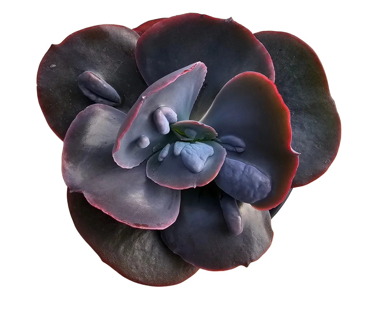 - Hojas de color morado o púrpura profundo, que se intensifican con la exposición al sol.